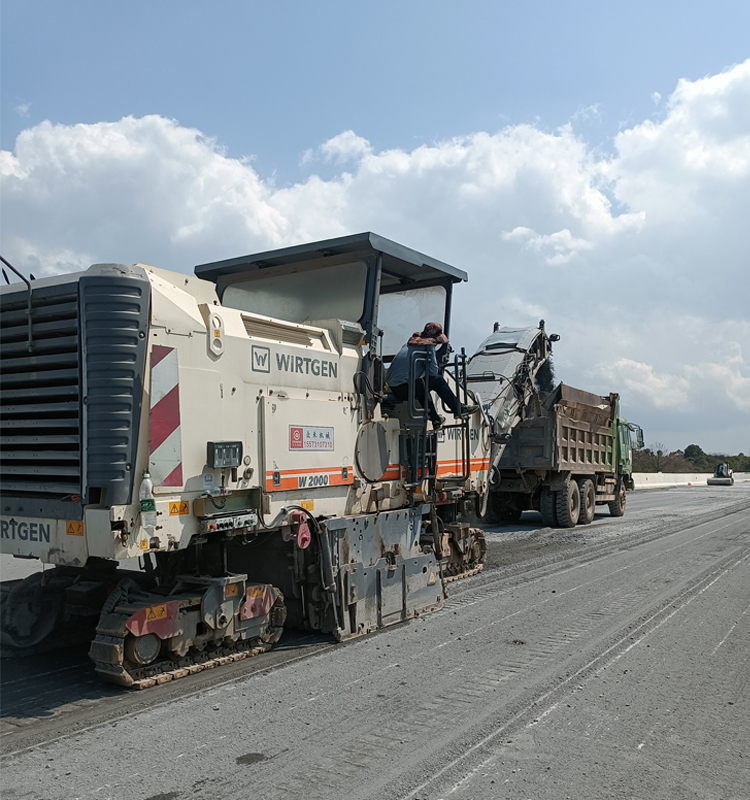 路面銑刨 :通俗說就是把損壞的舊路面刮一層,再鋪新面層。一般為的是消除舊路面破壞松散部分,或?yàn)榱诵屡f面的結(jié)合良好。還有,為了提高路